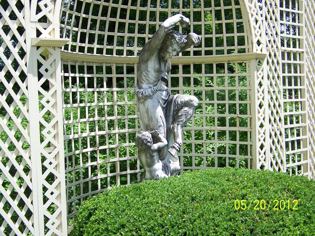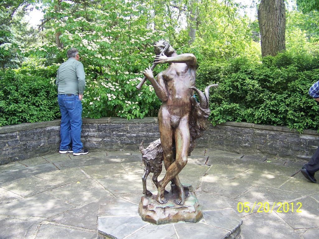 For some reason they saw fit to hang a sign on the Satyr. No doubt so visitors would not think it Satan.