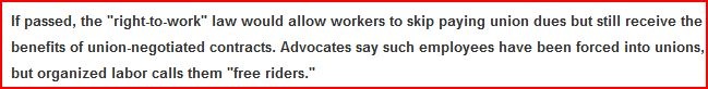 Unions are a necessary entity. If ‘Right to Work’ laws endanger them then ‘Right to Work’ laws should be fought wherever they exist. Those individuals that support ‘Right to Work’ laws are either rich, or have been duped.