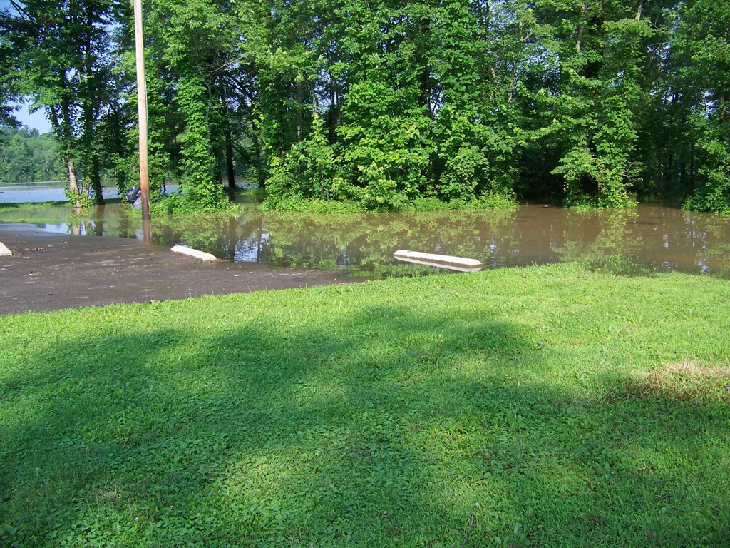 The dock at this location, the parking area off Route 430 in Mifflin, is now about 20 or so feet out in the water. Nevertheless, this boater is determined to enjoy the day.