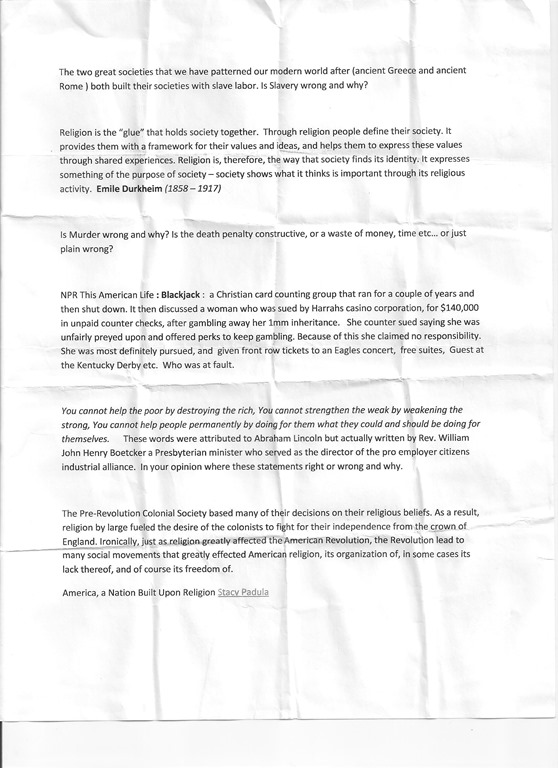 Their behavior did not correspond with their stated visions of what Christian behavior should be. After investigating the origins of and metamorphosis of Christianity it became clear to me that it was in its entirety a fabrication. As a result I declared my atheism where Christianity and its related forms were concerned. With further reasoning it was clear to me that all of mankind’s multiple forms of religion were likewise constructed from the imagination. All that remained was the possibility of some unknown entity which, as gathered from observation, had no interest or connection with humanity or its origins and for which there was no evidence as well.